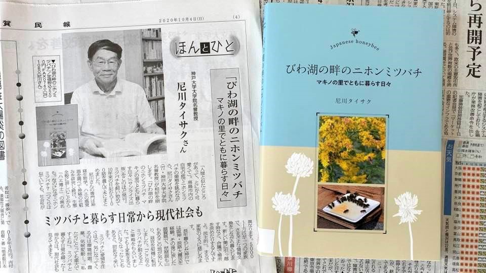 滋賀民報で尼川タイサク著『びわ湖の畔のニホンミツバチ マキノの里でともに暮らす日々』が紹介されました