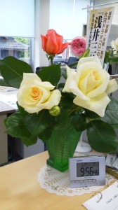 バラに限らず、年中、社長が庭で育てている花々を飾ってくださるので、