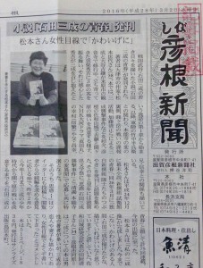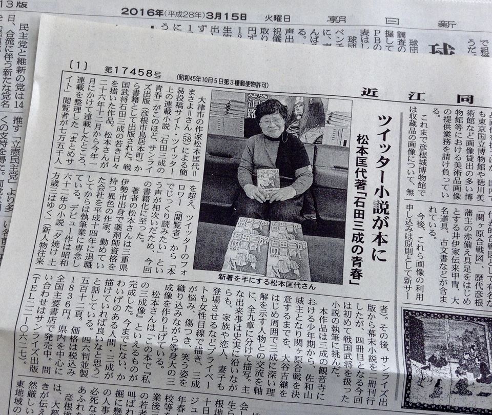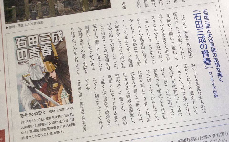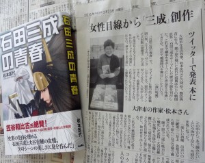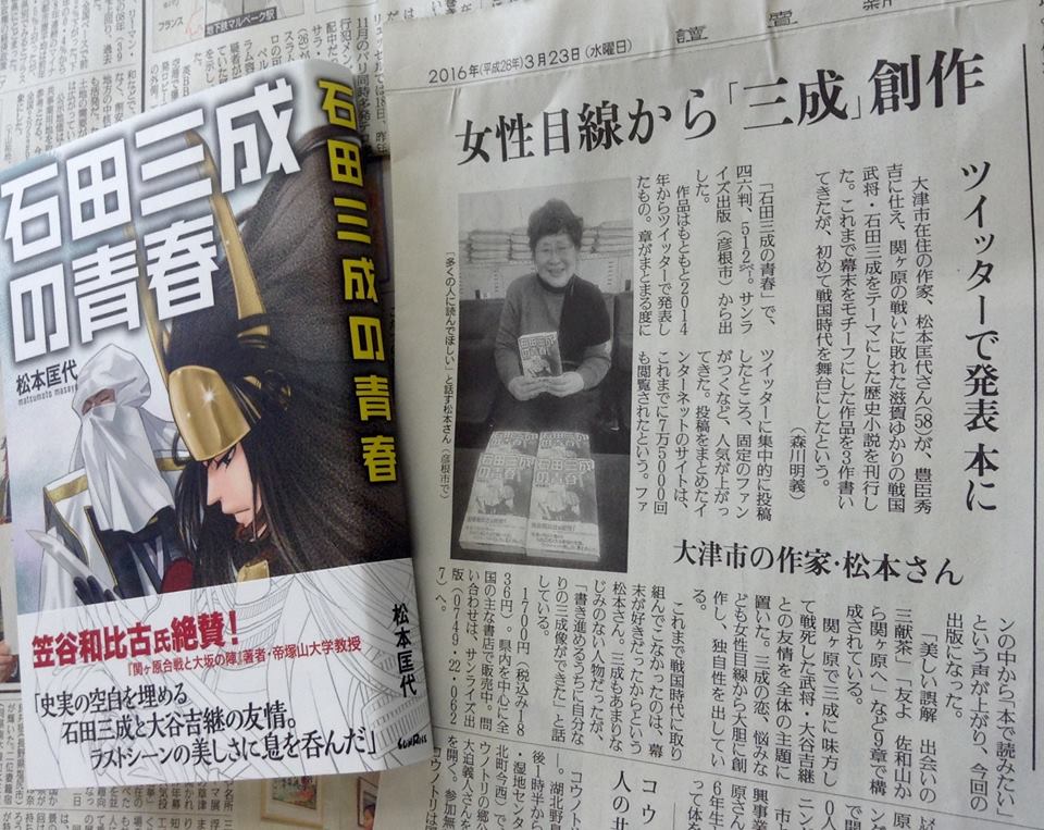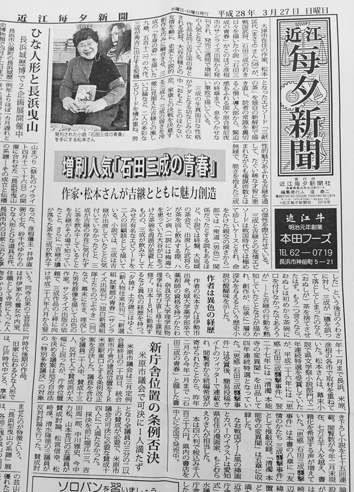 松本匡代著『石田三成の青春』が、しが彦根新聞と滋賀夕刊で紹介されました。