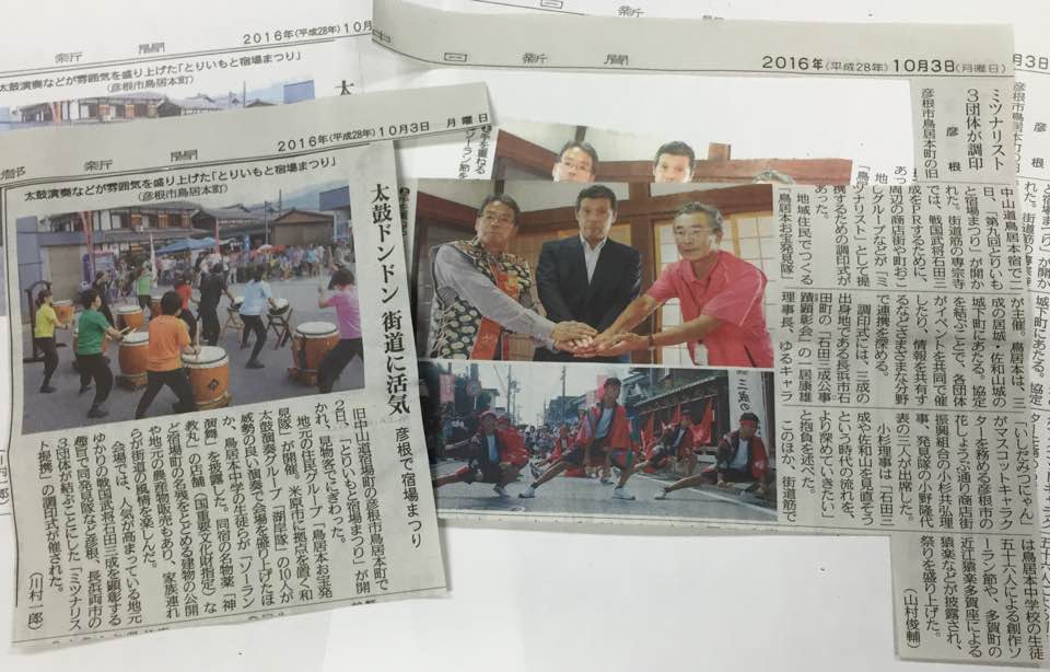 小社地元の町おこしグループ「鳥居本お宝発見隊」が主催した「とりいもと宿場まつり」が新聞で紹介されました。