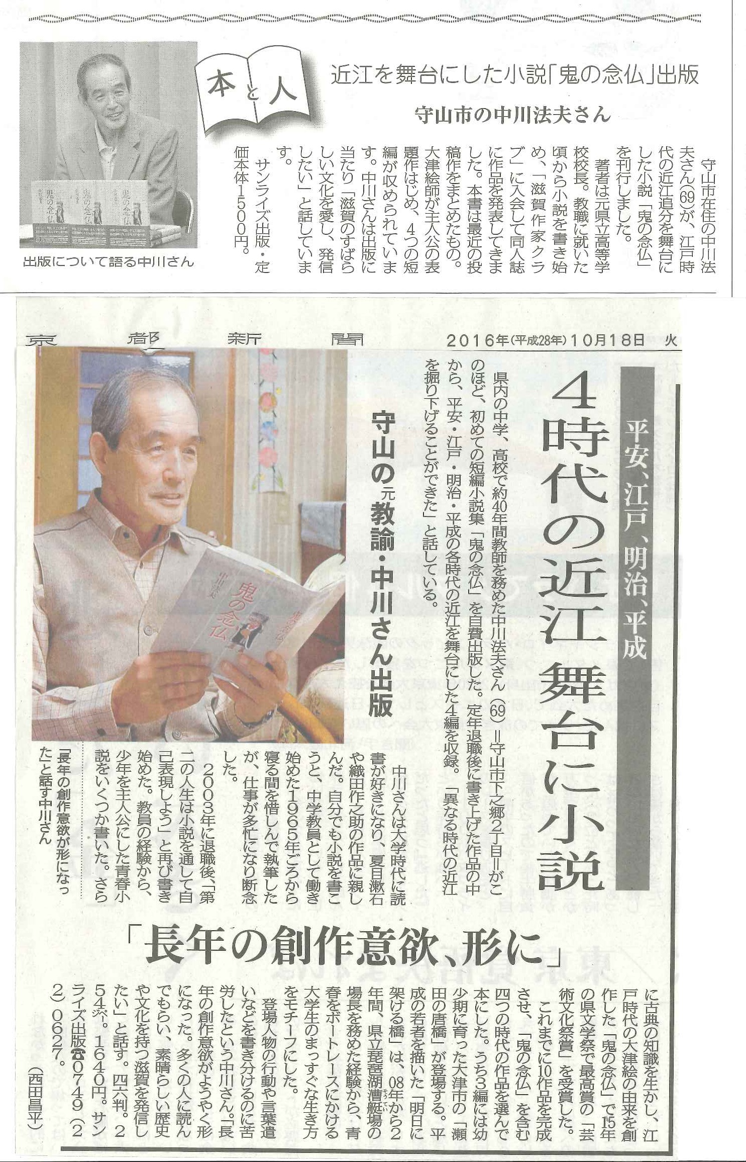 ▼近江を舞台にした小説「鬼の念仏」出版/守山市の中川法夫さん