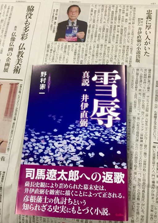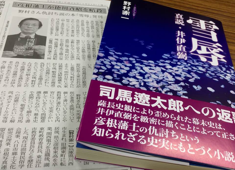 野村しづ一著『雪辱 真説・井伊直弼』が滋賀報知新聞で紹介されました。※「しづ」は「ウ冠+赤」