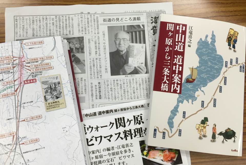 長浜城歴史博物館の元館長・江竜喜之さん(78)=米原市下丹生=はウォーキングと歴史散策が楽しめるガイドブック「中山道道中案内 関ヶ原から三条大橋」をサンライズ出版から発刊した。……地図では街道沿いの見どころやトイレの場所などとともに、中山道から分岐している街道を示し、歩行距離と目安の時間を記している。……(滋賀夕刊米原版2017/04/07)