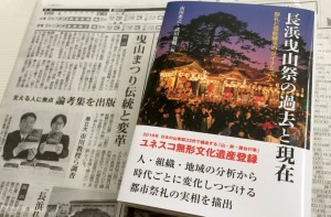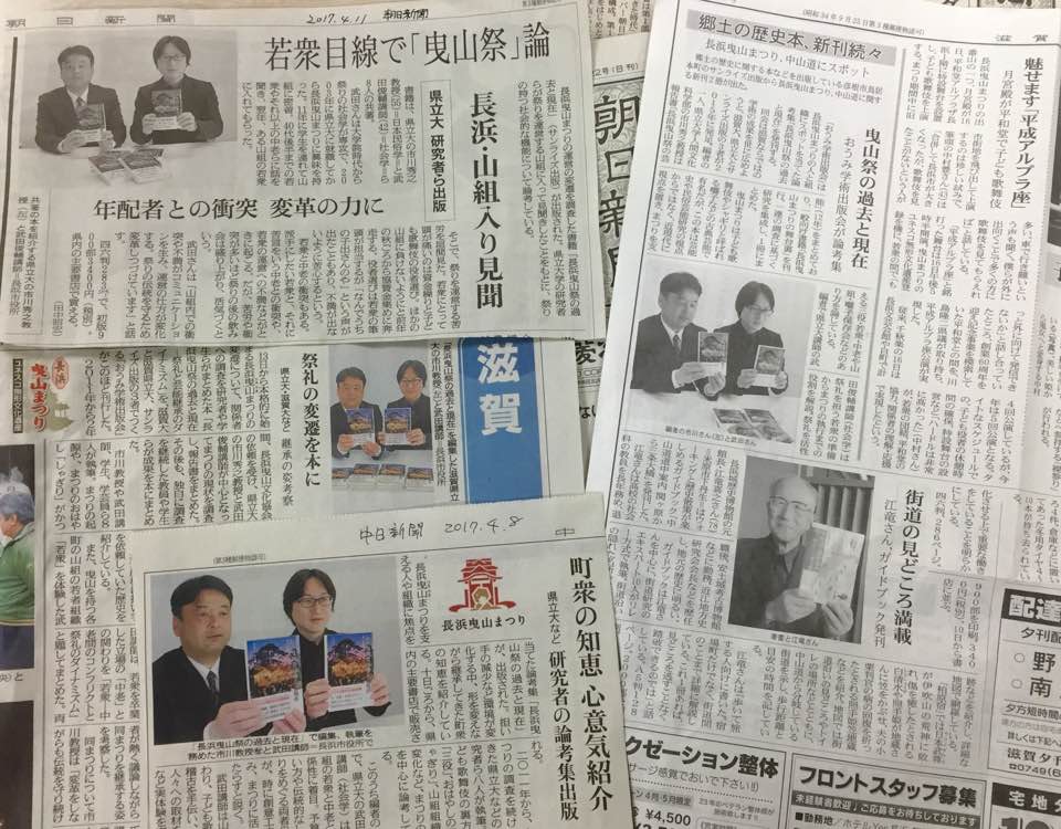市川秀之・武田俊輔編『長浜曳山祭の過去と現在 ―祭礼と芸能継承のダイナミズム―』が朝日新聞など4紙(累計5紙)で、江竜喜之編『中山道道中案内 関ヶ原から三条大橋』が滋賀夕刊(長浜・東浅井版)で紹介されました。