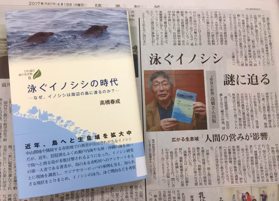 びわ湖の森の生き物6高橋春成著『泳ぐイノシシの時代』が読売新聞で紹介されました。