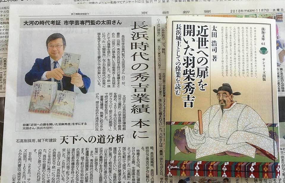 ▼秀吉の原点は長浜にあり 市学芸専門監の太田さんが著作:滋賀(中日新聞 CHUNICHI Web 2018/11/10)