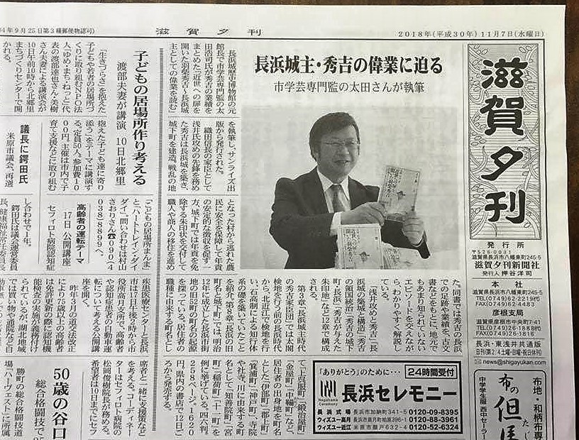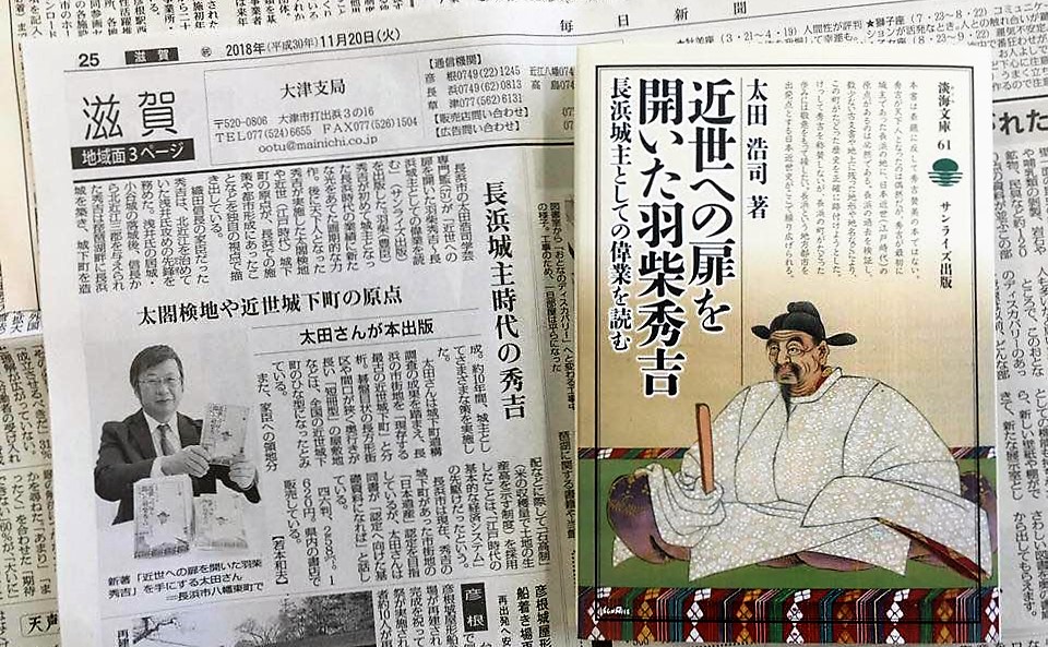 太田浩司著『近世への扉を開いた羽柴秀吉 長浜城主としての偉業を読む』が滋賀夕刊で紹介されました