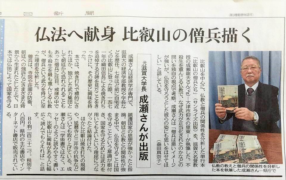 成瀬龍夫著『比叡山の僧兵たち 鎮護国家仏教が生んだ武力の正当化』が中日新聞で紹介されました