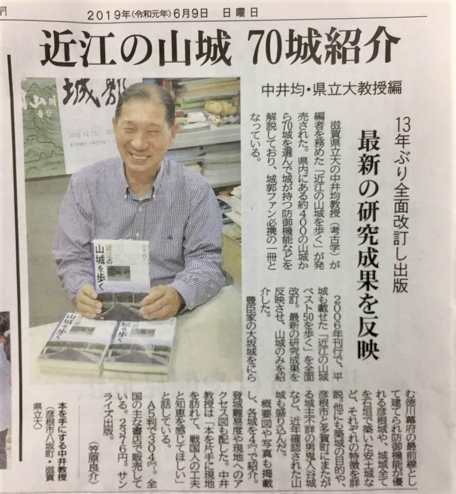 ▼近江の山城 70城紹介/中井均・県立大教授編/13年ぶり全面改訂し出版/最新の研究成果を反映 ……概要図や写真も掲載し、各城を4ページで紹介。登城難易度や現地へのアクセス図も配した。中井教授は「本を片手に現地を訪れて、戦国人の工夫と知恵を感じてほしい」と話している A5判で304ページ。全国の主な書店で販売している。2376円。サンライス出版。(京都新聞2019/06/09)