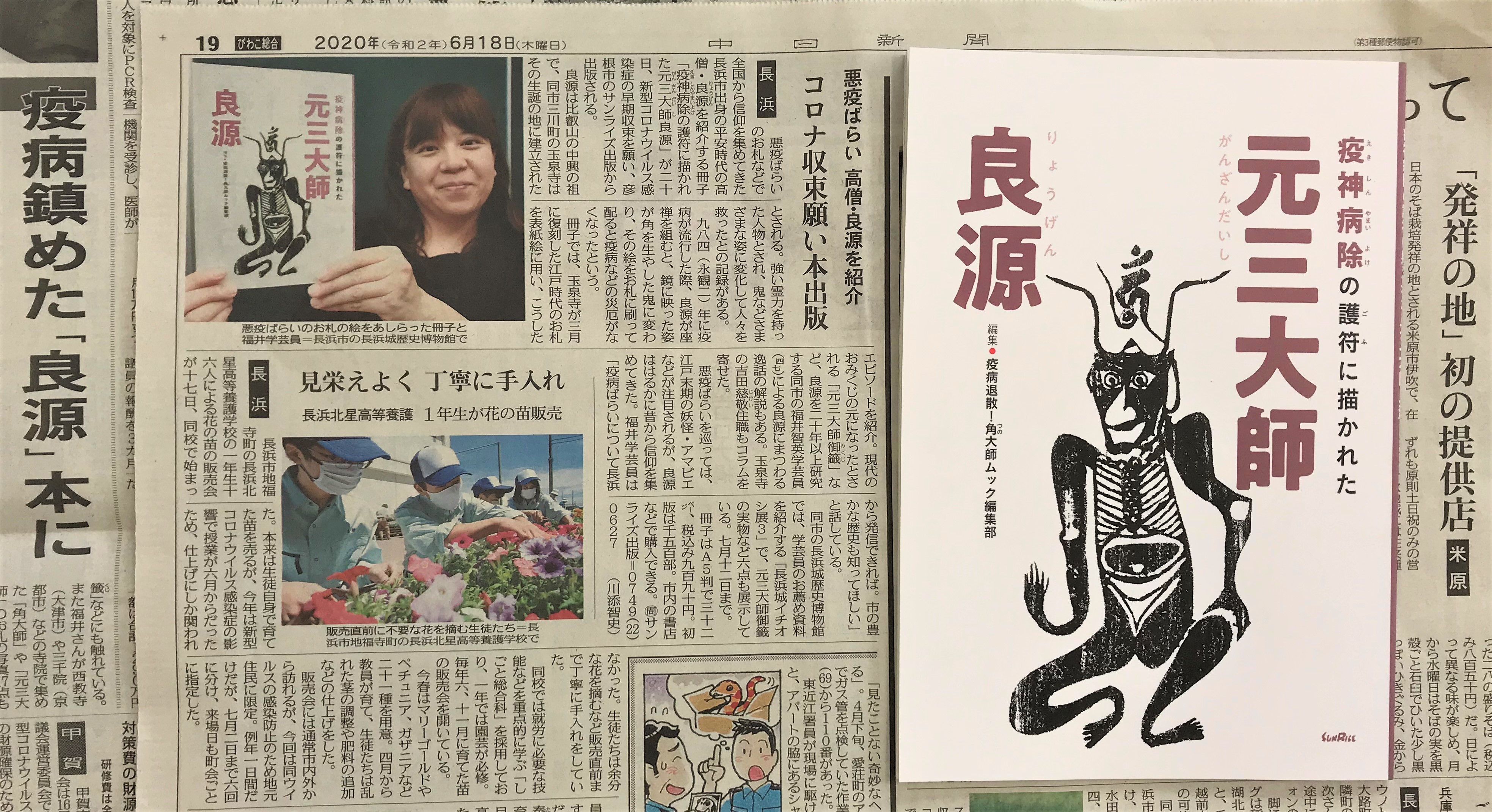 ……比叡山中興の祖として知られる良源は都に疫病が流行すると、角が生えた「角大師」になり疫病神を退散させたとされる。新型コロナ禍の終息を願い、長浜城歴史博物館の学芸員・福井智英さん、玉泉寺の吉田慈敬住職らが執筆した。
