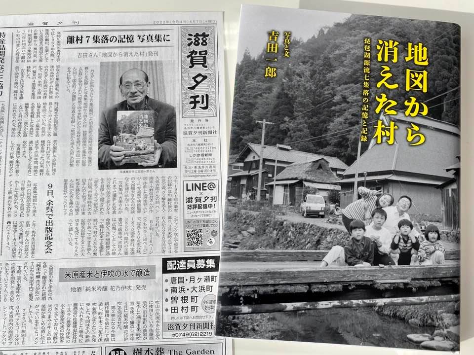 丹生ダム計画などにより集団離村した旧余呉町の高時川源流7集落の暮らしを記録した「地図から消えた村 琵琶湖源流七集落の記憶と記録」が発刊された。現地で四半世紀にわたり取材を続けた吉田一郎さん(80)=国友町=が撮影した写真を収録し、「地図から消えた村」の記憶を今に伝えている。……(滋賀夕刊2022/04/07)