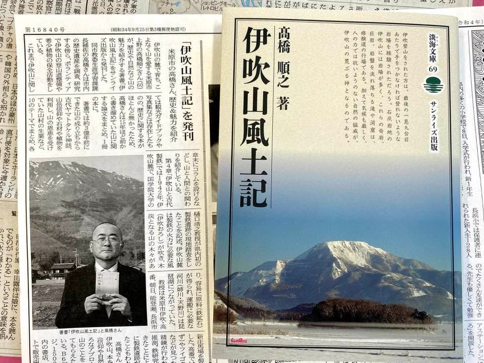 「これほど人と深く関わってきた山は珍しいと思います。そのすごさをぜひ知ってほしい」。……本書は伊吹山の概説に始まり、縄文時代の遺跡から見えてくる暮らしと伊吹山、伊吹山麓が研究の始まりとされる古代製鉄、山岳信仰から中世の山城、近代登山など、10章で構成。文化財関係の専門書や研究紀要に発表した論考などをベースに、読みやすく工夫して執筆しました。……(滋賀民報2022/05/01)