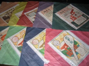 全部で10枚集まり、そのうち1枚だけ同じのがあったので、全部で9種類です。一番古いのは創業時より大正初期の15銭、次が創業操業時より大正11年の30銭。もうひとつ大正中期の30銭というのがあるがこれは大正初期のものと構図が同じもの。以下、大正11年9月、大正12年2月、大正12年6月、昭和初期、昭和11年4月、昭和11年7月と続きます。