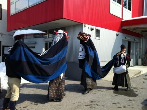 2月4日の土曜日。休日ながら会社で仕事をしていたら、伊勢大神楽・山本長太夫社中がやってきた。毎年2月の初めと決まっているのだが、休日出勤していたから今年も出会えた。