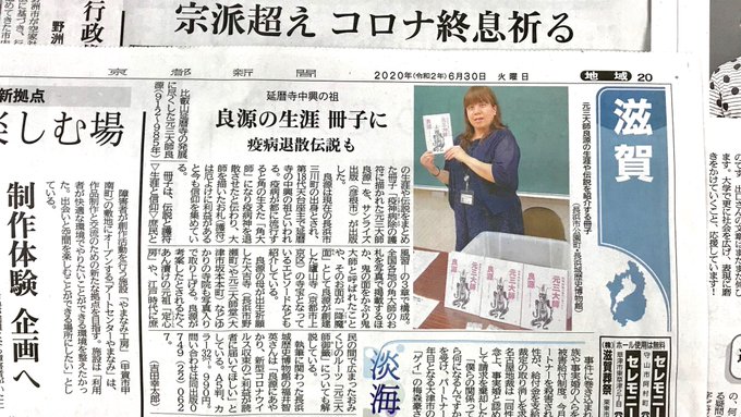 表紙は玉泉寺が3月に復刻、配布している「角大師」のお札をあしらっている。(朝日新聞2020/07/09)