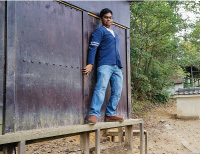 浅井歴史民俗資料館にて。ジャエさん(左)がはいているのが、インタビューで語られている「ブーツ」