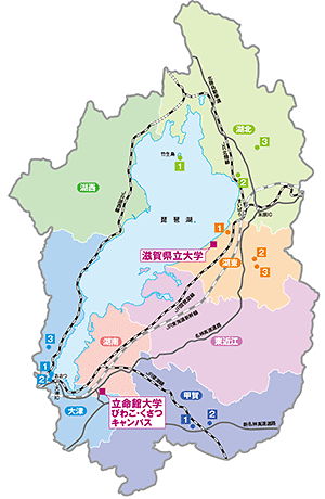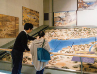 アンさんの地元、湖南省にある洞庭湖の「瀟湘八景」をもとに選ばれた「近江八景」について説明を受ける