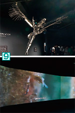 [上]ミジンコ類の中で最大種であるノロミジンコの巨大オブジェ(全長2.5m)/[下]マイクロワールドシアター