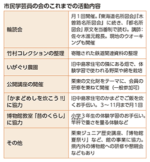 山内 これだけの展示をしようと思ったら、やはり10万円余りのお金がいるわけですよ。市民協働事業は、費用の4分の1を市民団体が出し、残りの4分3を栗東市が出してくれるというので、やるだけやってみるかと。おかげさまで第1回が大成功だったので、2回目の時は博物館がちゃんと予算を取ってくださいましたが。
