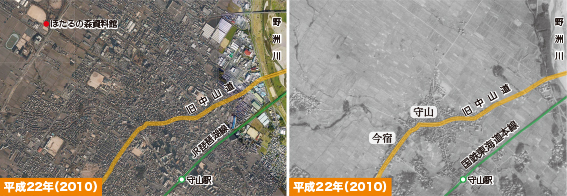 守山駅周辺の空中写真(国土地理院サイトより。昭和22年は米軍撮影)