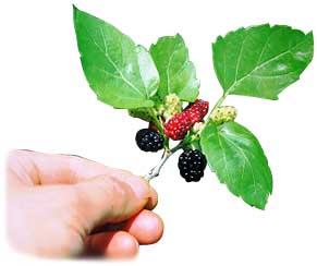 よく熟れた ツバメ (桑の実)は、口のまわりを紫色に染めながら、大人も子どもも喜んで食べる。