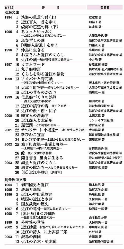 ●皆さん賛同してくださったし、その頃、県が「新しい淡海文化の創造」というのを政策課題にかかげてたので、とりもなおさず「淡海文庫」というシリーズ名にしたのですが、いまだに「タンカイ文庫」と読まれることがありますね(笑)。
