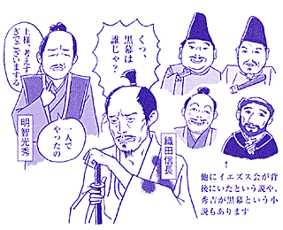 まず「三職(さんしき)推 任問題」。三職推任とは、天正10年、朝廷が信長に対して太政大臣か関白か征夷大将軍かのいずれかの職になるよう勧めたことをいいます。当時の公家の古文 書をもとに、これは信長が朝廷に圧力をかけて言わせたために、圧力をかけられた朝廷がそのことを屈辱に感じ、信長を亡き者にしようとしたとする説です。天 皇を中心とするお公家さんが共同で謀議を図り、実行犯を光秀に仕立て上げ信長を殺害したのだというわけです。しかし、この論証には異論が多く出ています。