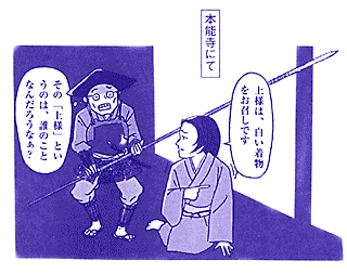 ついでにもう少し。ドラマでは信長が鉄砲を乱射する場面がありましたが、これはもちろんフィクションです。『信長公記』という、太田牛一によって書かれ た最も信頼できる信長に関する記録には「信長、初めには、御弓を取り合ひ、二、三つ遊ばし候へば、何れも時刻到来候て、御弓の弦切れ、其の後、御槍にて御 戦ひなされ」とあり、その後、御殿に火をかけ死んでしまったという内容に続きます。これが一番オーソドックスな信長の死にざまで、よくドラマや芝居でも描 かれています。今回の「功名が辻」台本にも同様に槍で戦うシーンが描かれていましたが、なぜか放送では鉄砲乱射という演出に変えられていました。